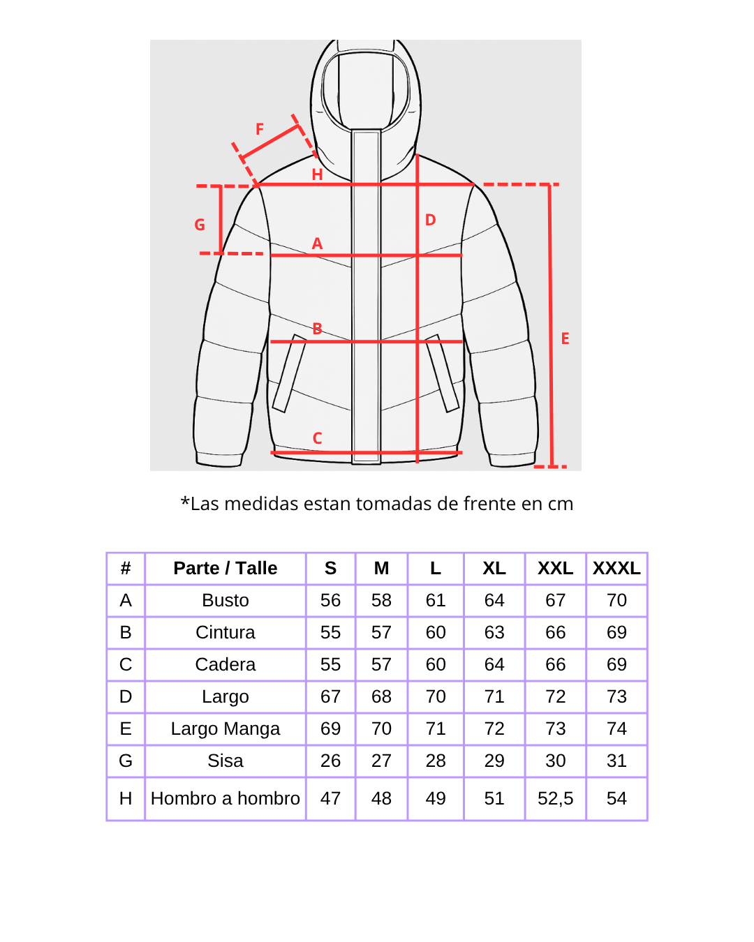Está rellena con aislante térmico de alta densidad y forrada con Sire, lo que garantiza abrigo real sin volumen excesivo. Además, los bolsillos exteriores tienen abrigo interno para cuidar tus manos del frío, y cuenta con un bolsillo interno para mayor practicidad.